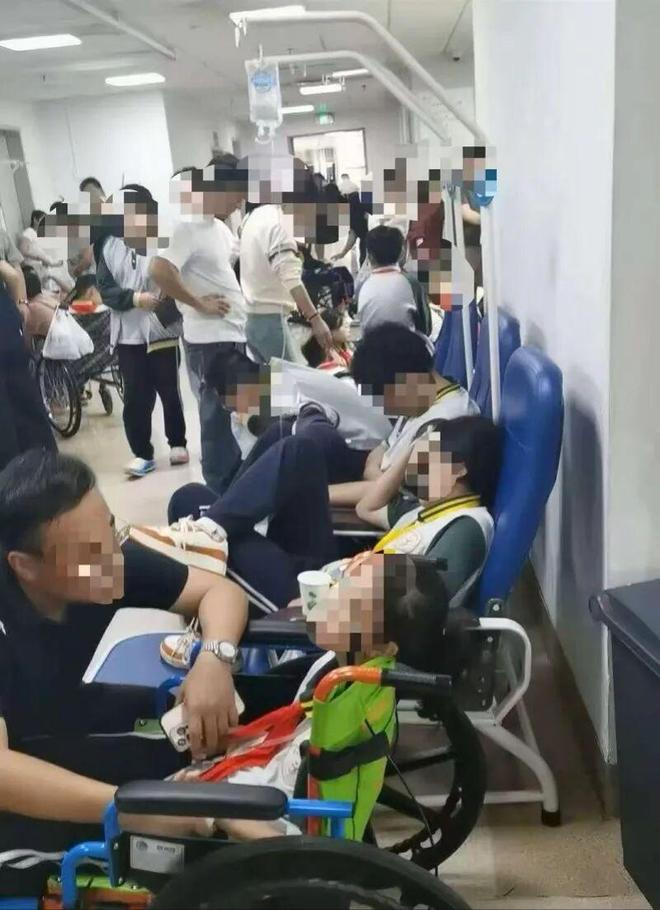 网友发布的视频显示,在医院里,有多名身穿校服的学生被医护人员搀扶,还有学生躺在诊室里输液。此外,评论区有家长反映称,学生疑似食用校外配送的汉堡导致出现腹痛、呕吐等症状。